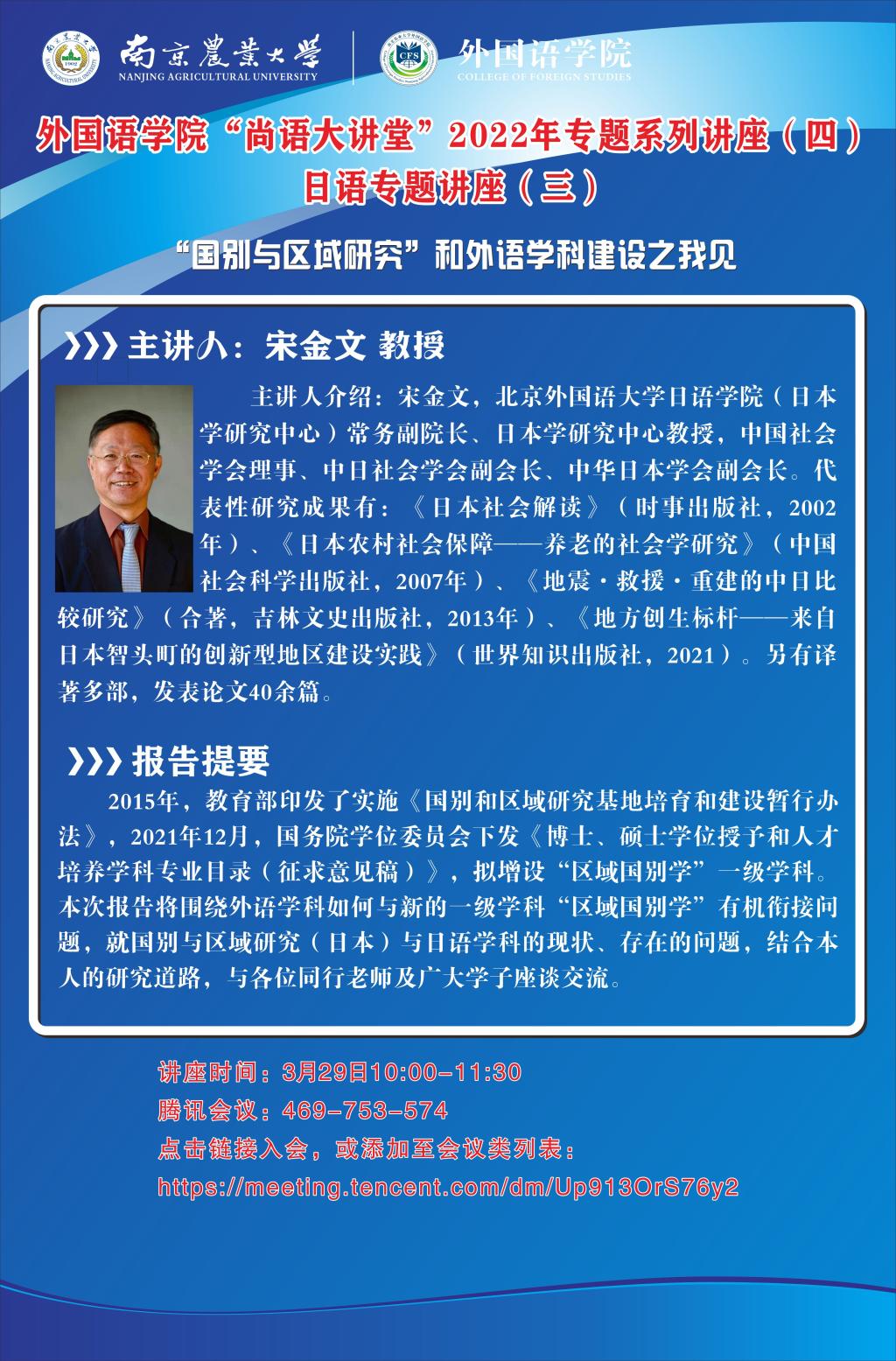 讲座时间:3月29日10:00~11:30