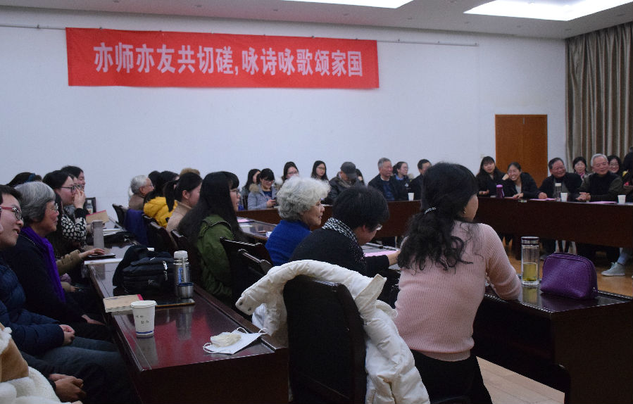12月29日下午,由9001cc金沙以诚为本党委主办的“亦师亦友共切磋,咏诗咏歌颂家国”新老党员交流会在教学楼七楼报告厅圆满举办。本次活动邀请校关工委的9位老党员同志和学院4位退休教师出席,学院党委书记韩纪琴、副书记董红梅、辅导员贾琼以及部分学生党员参加,活动由甄亚乐主持。