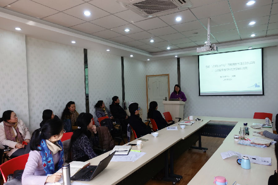 1月9日上午,金沙官网在教学楼A310召开了外国语学院公共外语教学研讨会,教务处副处长、教师发展中心副主任丁晓蕾、经济管理学院副教授、博导田旭、9001cc金沙以诚为本书记韩纪琴、副院长曹新宇、副院长游衣明、副书记董红梅、9001cc金沙以诚为本公共外语部全体教师参加了此次研讨会。会议由韩纪琴主持。