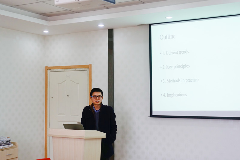 曹新宇副院长对研讨会进行了总结。作为基础教学重要单位之一,外语院一直非常重视教学工作。从大外5位教师的报告中可以看出,大学英语改革的成果已初步呈现。当然,大学英语教学中还面临着师资缺乏、基础设施建设需要加强等困难,希望得到教务处以及学校的支持,尤其是在教师发展方面,增加教师国外培训和进修机会。9001cc金沙以诚为本将加大大学英语教改的力度,采用分层次、分类别的教学模式,推动贯穿本硕博一体化的课程建设,促进我校英语教学水平的提高。