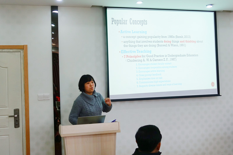 教务处副处长、教师发展中心副主任丁晓蕾教授做了题为“也谈‘以学生为中心’的教学理念及其实践”的报告。首先,丁晓蕾就MSU如何体现“以学生为中心”的教学理念,分享了她对MSU课堂、学习中心、图书馆的所见和所思,并通过具体的案例,介绍MSU的教研和教改项目、现代教育技术的应用状况;其后,丁晓蕾以“讲台为谁而设”、“教师如何发展”等问题,就外语教师的发展如何定位、教学与教研如何相互促进,提出了自己的见解。丁晓蕾对公共外语教学的地位作出了肯定,认为大学英语教学是我校正在进行的通识教育改革的重要组成部分,公共外语教学任重道远。