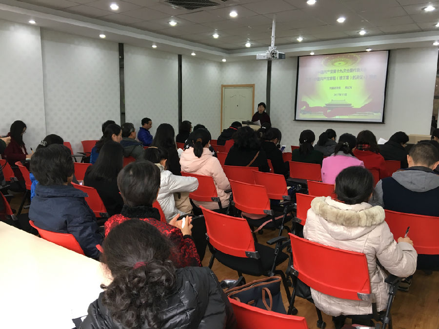 11月6日下午,9001cc金沙以诚为本党委在教学楼A310召开了全院教职工党员大会。院党委书记韩纪琴给全体教职工党员作了题为“学习党章,遵循党章,做合格党员”的专题教育党课。