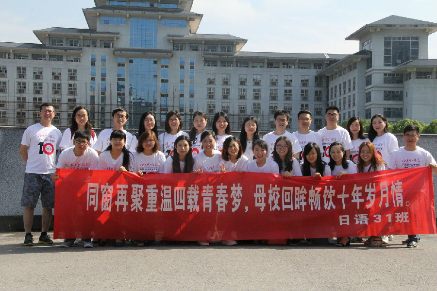 欢聚——“我们快毕业十年啦,要组织聚会,大家都要来哦!”两千余条微信消息,半年时间的满满期待和筹备,终于等到这一天。2017年6月10日,2007届日语31班天南海北的同学,从四面八方,纷纷赶来,26名同学齐齐再聚,只为赴一个十年之约。“你没变,还是我记忆中最美好的模样”,光与影缓缓流动,心与心紧紧相连,觥筹交错,欢声笑语,同学间沉淀十年的深厚感情没有改变。