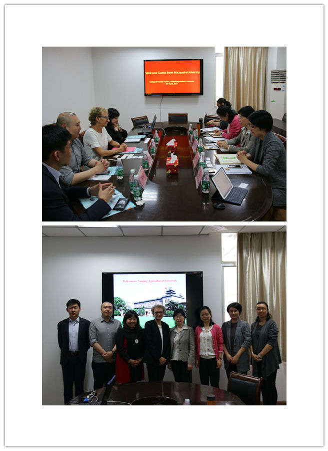 4月21日下午,澳大利亚麦考瑞大学人文科学学院副院长Lynda Yates教授、麦考瑞大学中国区高级经理柳茵茵来金沙官网商谈学生联合培养等事宜。院党委书记韩纪琴、副院长曹新宇、英语系徐黎老师等在教学楼E302接待了Lynda Yates一行。我校国际处副处长魏薇专程来参加交流。