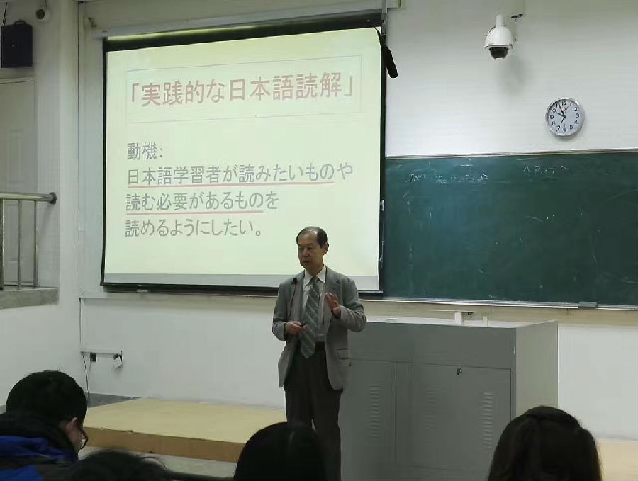 4月7-8日,日本国立国语研究所著名教授野田尙史先生莅临9001cc金沙以诚为本。野田教授分别在教学楼C201和A310,为师生们带来了两场别开生面的专题讲座。讲座不仅吸引了9001cc金沙以诚为本的大三大四学生、研究生及日语系全体教师,还吸引了来自南京理工大学、扬州大学、南京工业大学、南京航空航天大学等的部分师生。讲座由副院长游衣明主持。