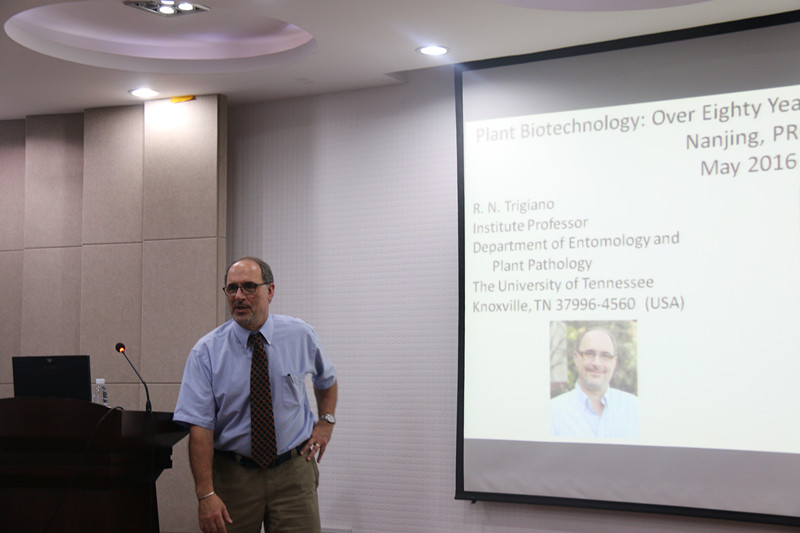 5月12日下午,我校首届农业人文英语论坛暨外语院选拔赛(The 1st English Forum on Agricultural Humanities)在理科楼C303成功举办。出席本次论坛的评审嘉宾有来自美国田纳西大学的Robert N.Trigiano教授,金沙官网副院长王银泉教授,公外系主任顾飞荣教授,王凤英副教授和朱云副教授。金沙官网研究生一年级学生以及我校部分本科生聆听了论坛演讲。
