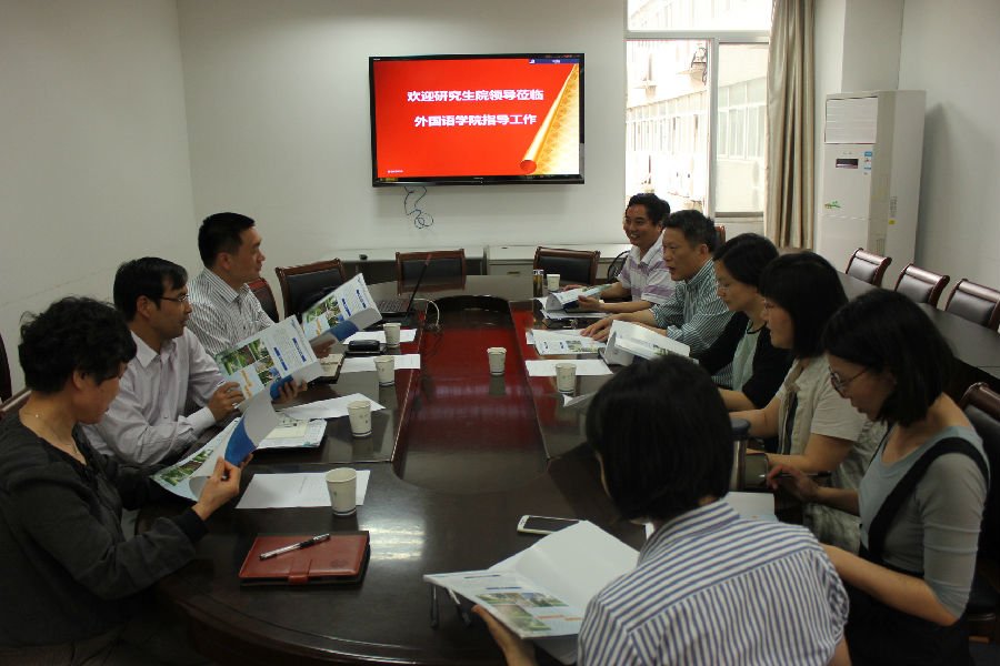 2015年5月22日下午,研究生院来金沙官网调研研究生招生工作情况。校研究生院副院长陈杰,招生办主任薛金林,招生办副主任周孜出席了此次调研会议。参加会议的还有9001cc金沙以诚为本副院长王银泉教授、游衣明副教授和曹新宇副教授,日语硕士点负责人金锦珠副教授。会议由学院副院长王银泉主持。