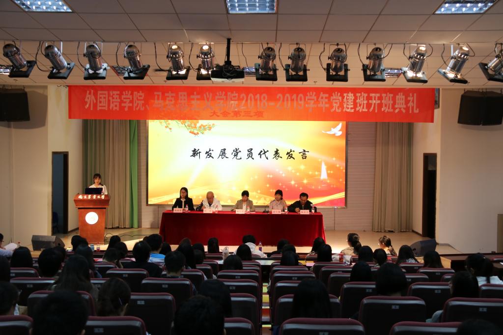 典礼在庄严肃穆的《国际歌》中正式开始。首先,由新发展党员代表吴靖发言。她以自己的入党经历为切入点,指出党员是责任、信仰与先进性的代表,认为党员应积极发挥先锋模范作用,从思想和行动上引领青年。随后,马克思主义学院党员代表杨浩发言。他讲述了自己入党后,个人的成长和带领所在集体不断修炼的经历,强调“组织上入党一生一次,思想上入党是一辈子的事”,鼓励新发展学生党员要提高个人政治素质和理论水平,严守党章和纪律,成为经得起考验的党的接班人。接下来,在新发展党员刘艳秋同志的带领下,全体新发展党员面对党旗重温入党誓词。之后,党建班副班长朱江霖对2017-2018学年学生党建工作进行了总结,并对党建班的下一步工作部署进行合理展望。