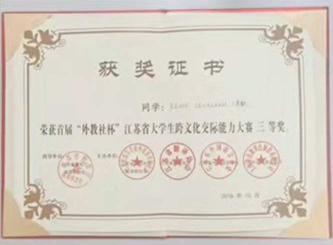 经过激烈的角逐,我校学生获得佳绩。其中,外语学院汤璟瑶获得本科组三等奖,动医学院李默获得留学生组三等奖、经管院王禹钦获得小语种组三等奖。