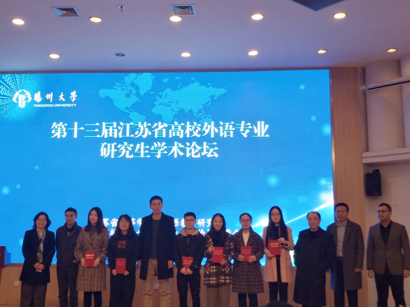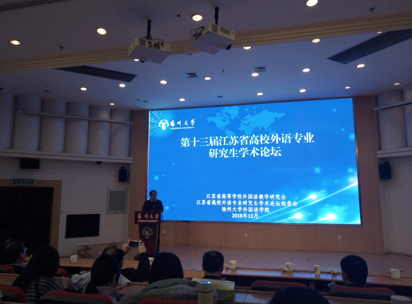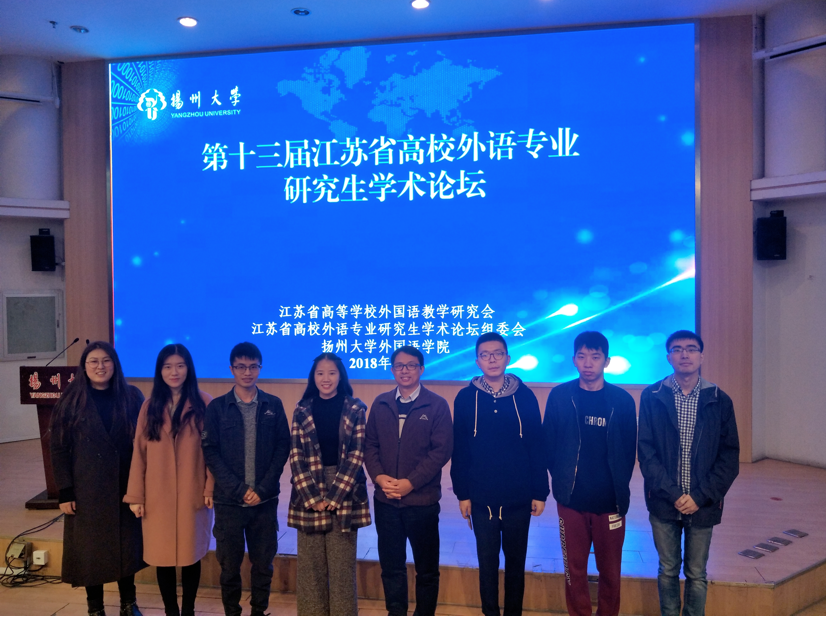 2018年12月1日至2日,第十三届江苏省高校外语专业研究生学术论坛在扬州大学隆重召开。本届论坛由江苏省高等学校外语教学研究会、江苏省高校外语专业研究生学术论坛组委会以及扬州大学9001cc金沙以诚为本共同主办。金沙官网李平教授携7名外国语言文学和翻译专业的研究生参加了本次论坛。