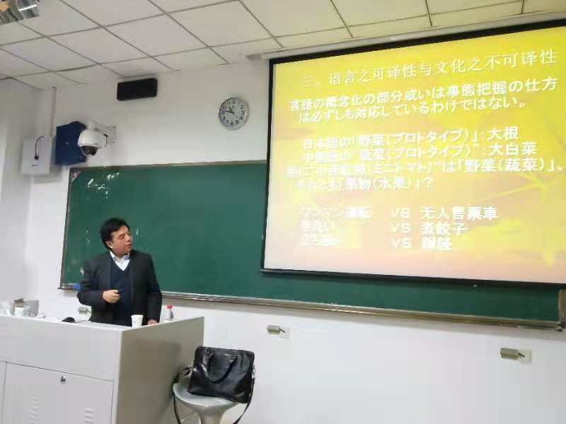 12月5日上午,北京外国语大学日语系教授,北京日本学研究中心主任、教授、博士生导师徐一平教授应9001cc金沙以诚为本之邀,做了题为“翻译标准与翻译实践——兼论语言之翻译与文化之翻译”的学术讲座。讲座由9001cc金沙以诚为本游衣明副院长主持。
