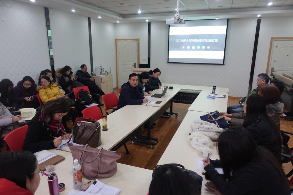 为推进2019版人才培养方案修订,1月8日上午9点,金沙官网在教学楼A310召开大学英语课程体系改革研讨会。金沙官网副院长曹新宇、副院长游衣明和公外部各系老师参加了交流研讨。会议由公外部主任王菊芳主持。