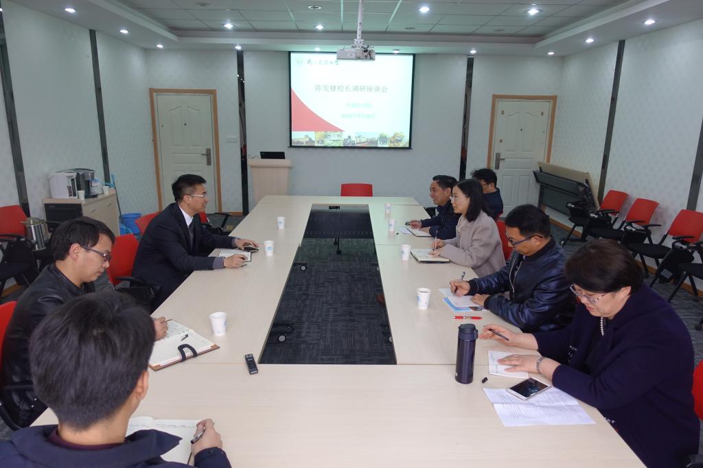 3月26日上午,校长陈发棣、人事处副处长白振田一行来金沙官网调研,主持工作副院长曹新宇、副院长游衣明、教师代表王银泉教授、李平教授和李红副教授出席了调研座谈会。