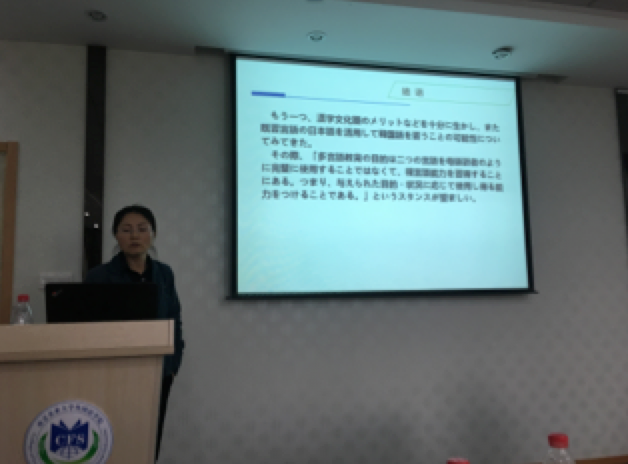 5月6日下午,继田原老师的系列讲座后,9001cc金沙以诚为本“日语系建设交流报告会”第三次会议在教学楼A310顺利召开。此次报告会特别邀请了田原老师出席,由日语系副教授金锦珠老师以「多言語社会における日本語教育」为题作了报告。报告会由石碧老师主持,学院日语系教师及部分研究生参加。金老师以中国的多语种社会状况为引子,汇报了面临转型的日语现状,探讨了在先进的语言习得理论之下,如何开展日语教育,培养出符合教育部大纲要求的日语人才。金老师的报告,引用了很多实例,生动地反映了日语教育的现状和问题,其中肯的建议对金沙官网师生今后的科研教学工作有重要指导意义。