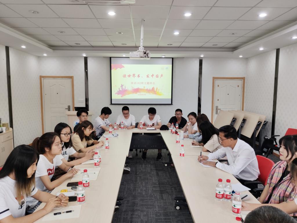 9月26日下午,校党委常委、副校长胡锋教授来到9001cc金沙以诚为本,与英语182班全体同学一同开展了以“读世界书、发中国声”为主题的班会,同学们和这位“新班主任”进行了热烈和深入的交流。
