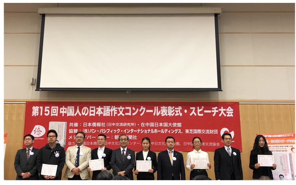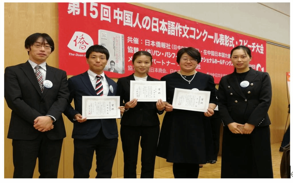 12月12日,第15届中国人日语作文大赛颁奖仪式在日本驻华大使馆隆重举行,金沙官网获奖师生代表应邀出席。