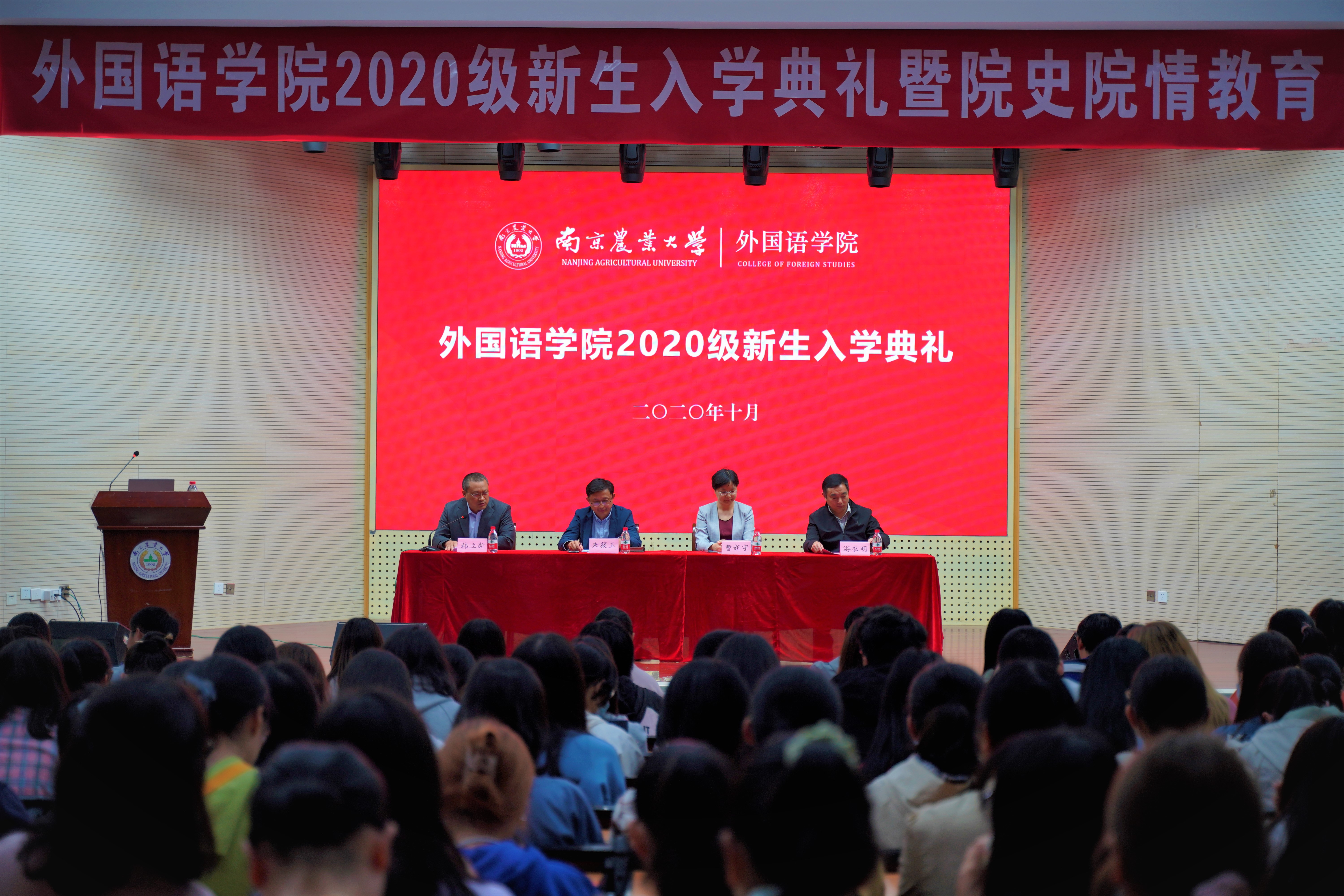 10月11日下午,金沙官网2020级新生开学典礼暨院史院情教育于大学生活动中心举行。院党委书记朱筱玉、副院长(主持工作)曹新宇、副院长游衣明、英语系系主任李平、日语系系主任卢冬丽、导师代表段道余、班主任代表顾维明出席典礼。辅导员甄亚乐、曹璇、杨瑞萌、雷燕,2020级全体165名本科生、新转专业进入金沙官网的5名本科生、56名研究生等226名新同学参加了典礼。典礼由韩立新主持。