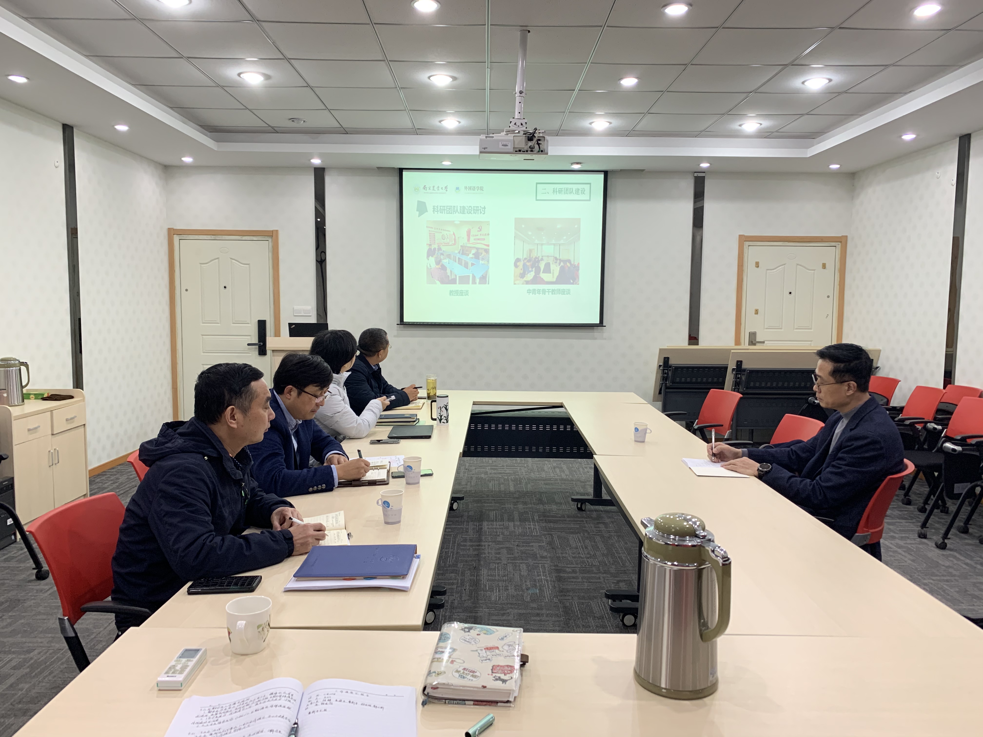 11月25日下午,校党委常委、副校长胡锋来金沙官网检查指导工作,曹新宇副院长代表学院汇报了本学期以来学院在党建思政、人才培养、团队建设、科学研究等方面的工作进展和主要举措,院党委书记朱筱玉就“双带头人”支部换届和人才队伍建设等方面的情况做了汇报。