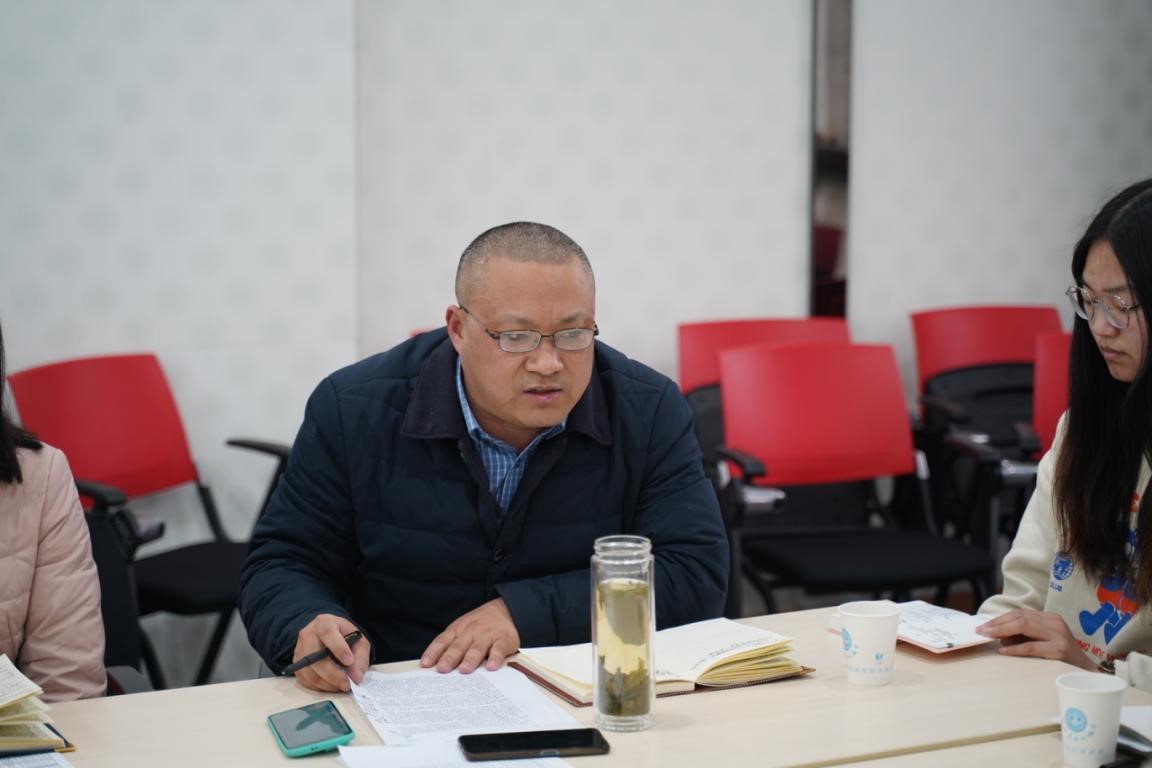 党委书记朱筱玉发言。他指出和谐的师生关系非常重要,班主任和导师要关注学生成长;接着他强调了推进就业工作的重要性,班主任和导师要主动向学生提供可靠的招聘信息,并持续关注学生求职动态。