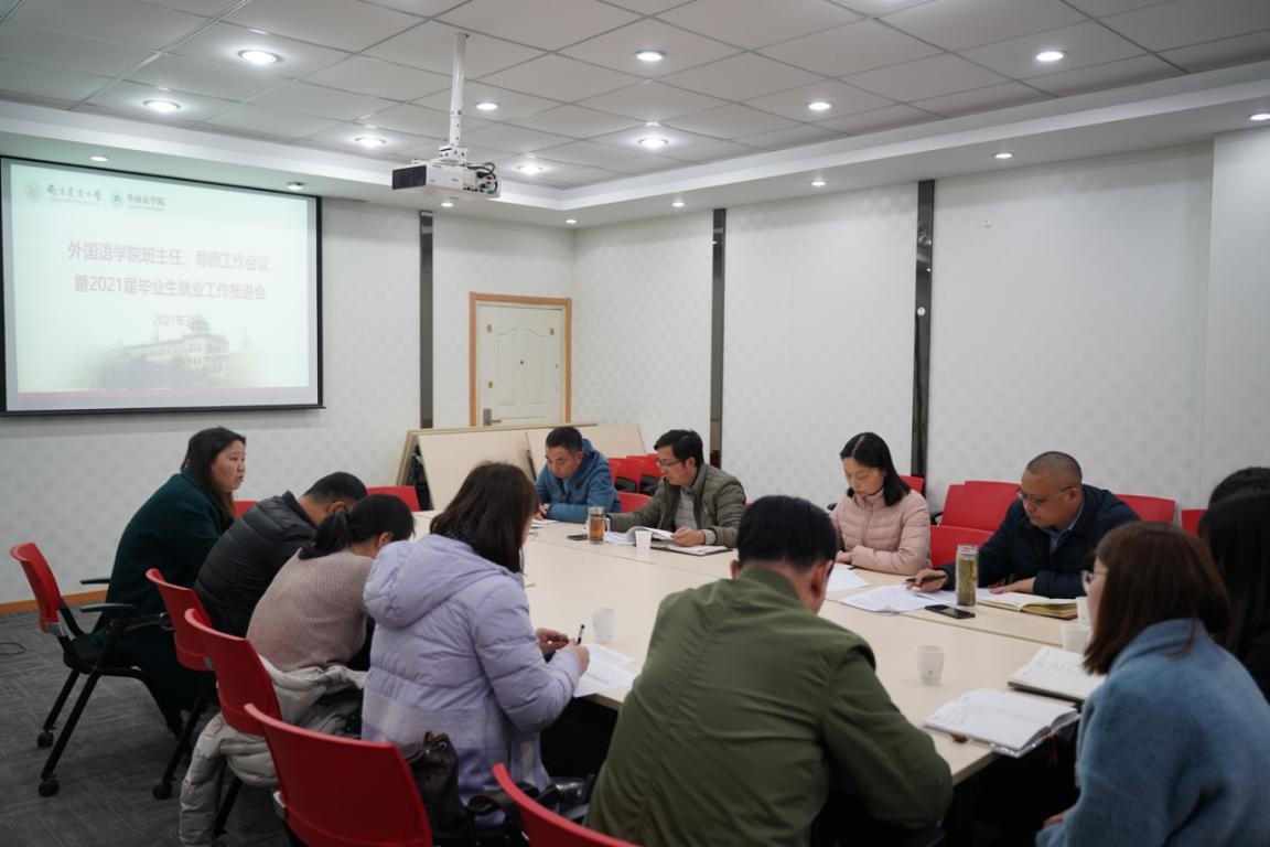 2021年3月18日下午,外国语班主任、导师工作会议暨2021届毕业生就业工作推进会于教学楼A310召开。9001cc金沙以诚为本党委书记朱筱玉、院长裴正薇、党委副书记韩立新、副院长游衣明、研究生导师和2021届毕业生班主任以及学院辅导员参加了本次会议。